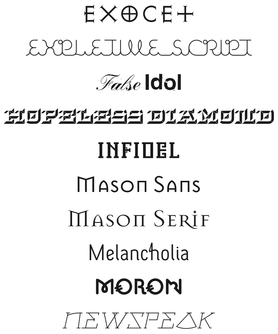 Mason was a very controversial typeface when it released in the U.S due to it sharing the same name as prolific serial killer Charles Manson. This typeface, inspired by classical stone architecture, was originally named to “express extreme opposite emotions – love and hate, beauty and ugliness” by having an elegant name echoing words like mason and mansion, while also being associated with something so horrific and vile as the Manson cult and murders (Barnbrook, n.d-a). This typeface became one of Barnbrook’s most popular, with clients like Walt Disney and the BBC using it, and it was one of the first typefaces ever to be included in the permanent library at the Museum of Modern Art in New York (Barnbrook, 2011, para. 1).